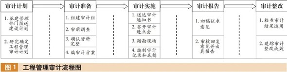 规范审计计划、通知、实施、报告、整改等审计程序(见图1),严格落实审计取证、征求被审计单位意见等工作要求,有助于跳出造价复核的狭隘理念,彰显审计权威,控制审计风险,确保审计合法合规。